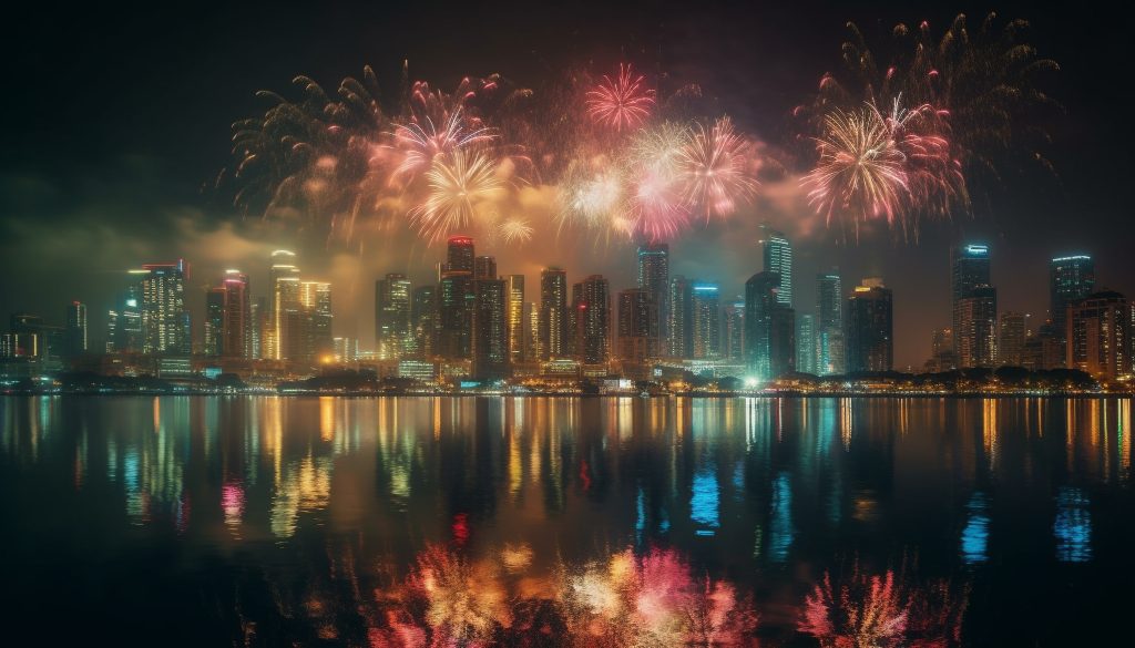 Dubai’s evenings are pure spectacle. The city’s skyline becomes a canvas of lights and color as fireworks and illuminations dazzle across iconic landmarks. The New Year’s Eve show at Burj Khalifa is a world-renowned event, attracting thousands of spectators to Downtown Dubai. Similarly, Palm Jumeirah hosts synchronized fireworks that light up the Arabian Gulf.